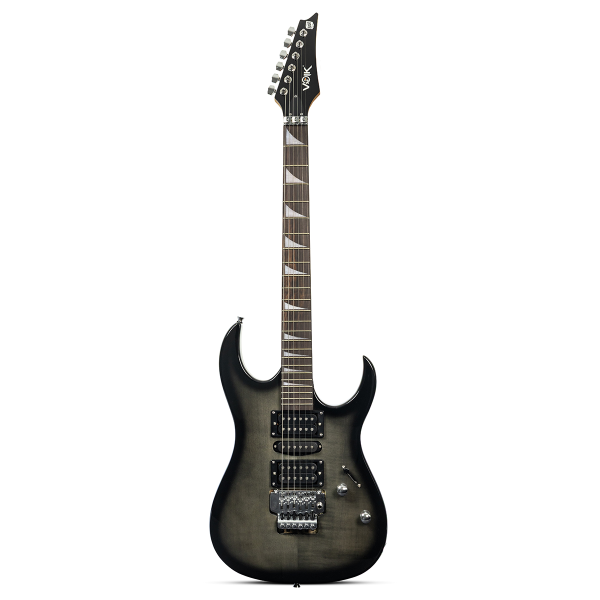 A Guitarra Elétrica Superstrato Voik EDGE 220 Gloss Black é ideal para músicos que buscam potência, precisão e visual moderno. Possui corpo em basswood, braço em maple parafusado e escala em rosewood com 24 trastes e marcações sharktooth. A configuração de captadores HSH garante versatilidade para diferentes estilos, enquanto a ponte flutuante estilo Floyd Rose com double locking e nut com trava oferecem excelente estabilidade de afinação. Com acabamento preto brilhante e headstock invertido, entrega desempenho profissional e tocabilidade segura.