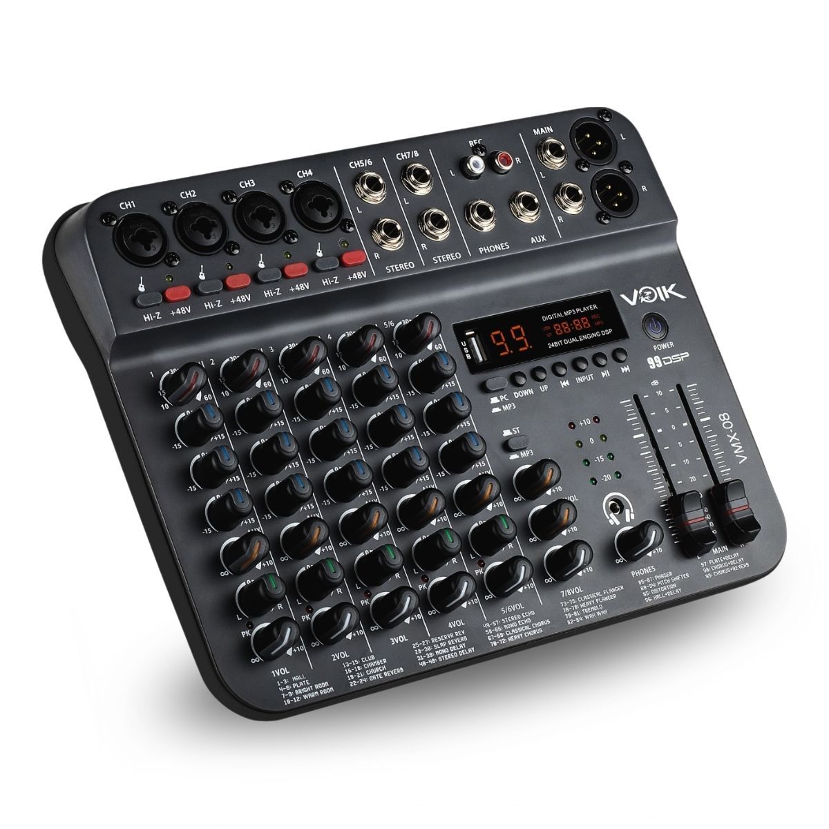 01 Mesa de Som Bluetooth 8 Canais Voik VMX-08